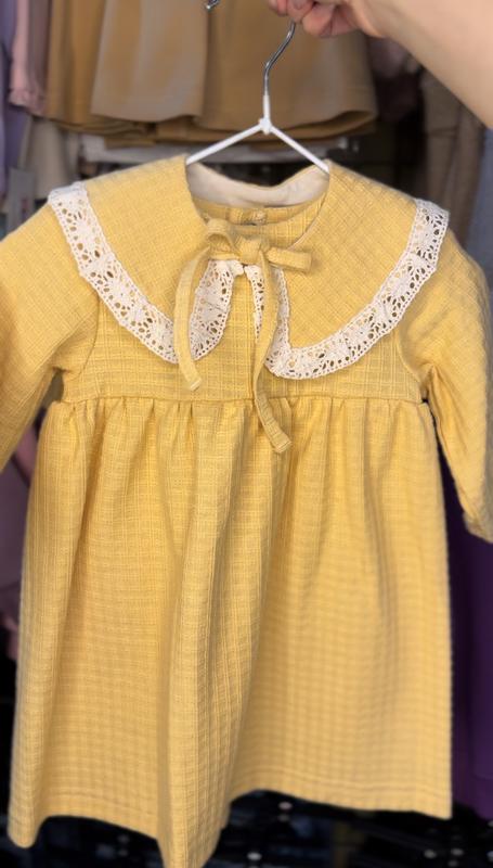 Сукня зі змінним комірцем. Зручна та дуже красива модель сукні в бежевому та ніжно-жовтому кольорах. Для дівчаток від 6 місяців до 3 років. Спинка повністю на кнопочках. В комплекті йде повʼязка на голову. Розміри: 68,74,80,86,92,98 Залюбки зроблю заміри та відправлю поштою