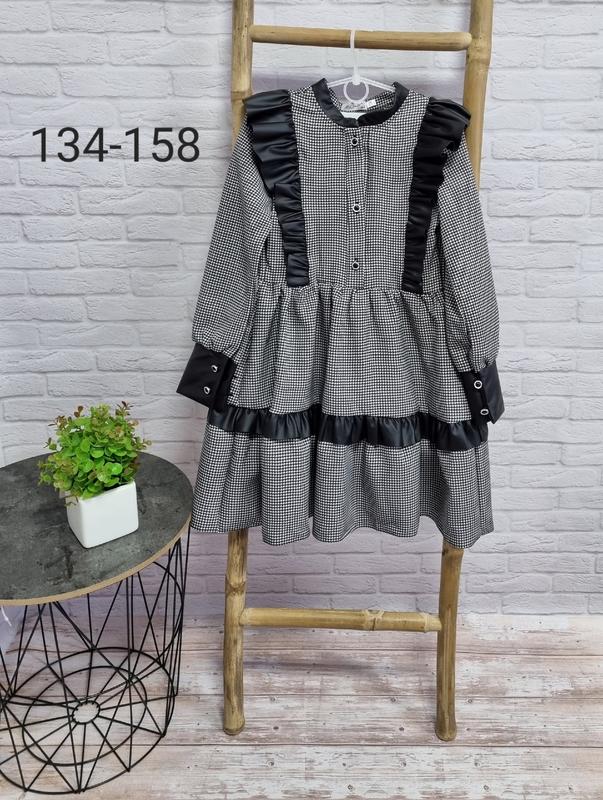 ландиш ✅️В НАЯВНОСТІ 💋НОВИНОЧКА Стильное и модное платье ткань костюмка в сочетании с эко кожей рукавчик застегивается на пуговицу РЕКОМЕНДУЮ 👌 134(2 шт)-длина 70,рукав 51,пог 32 140(2 шт)-длина 75,рукав 52, пог 33 146(1 шт)-длина 79,рукав 53, пог 34 152(2 шт)-длина 82,рукав 56, пог 35 158(2 шт)-длина 88,рукав 57, пог 36 +-2 см