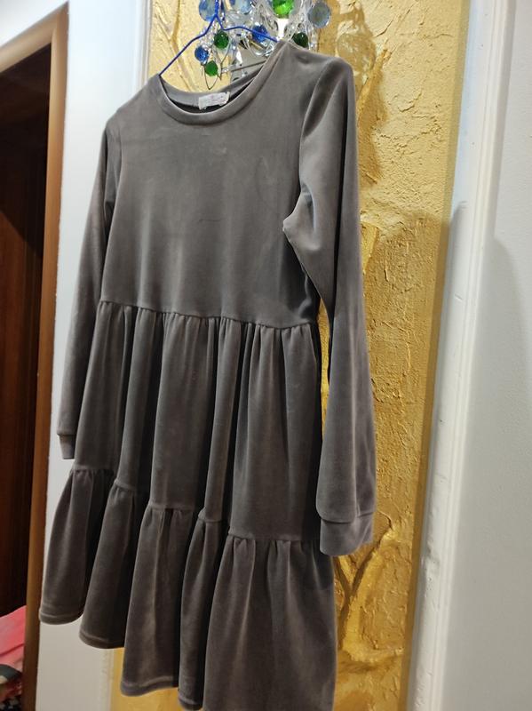 Красивое велюровое платье темно серый