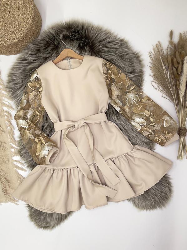 Неймовірна сукня Під поясокТканина креп- костюмка і гіпюр (не колеться) Супер якість Зріст/довжина/пог/рукав від горловини похибка+-2см 128/67/36/55-1шт