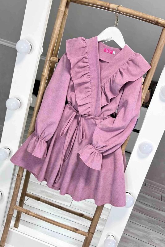Неймовірно ніжна та гарна сукня з пишними рюшами Тканина мікровельвет рукавчик на резиночці в талії також резинка поясок в комплекті Супер якість Зріст/довжина/пог/рукав від плеча похибка+-2см 140/77/39/55-1шт 146/80/41/57-2шт 152/82/44/59-1шт 158/86/45/62-1шт 164/88/47/64-2шт