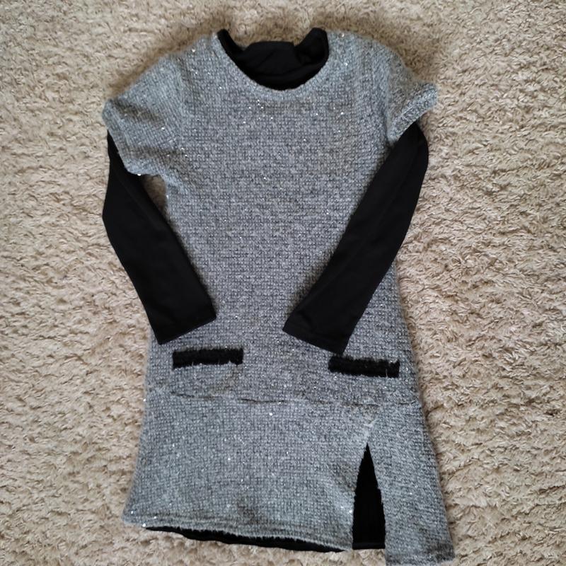 черное платье + туника. очень стильное и функциональное платье. за счет безрукавка подходит на холодную погоду. идет на возраст где-то 8-10 лет, зависит от роста ребенка.