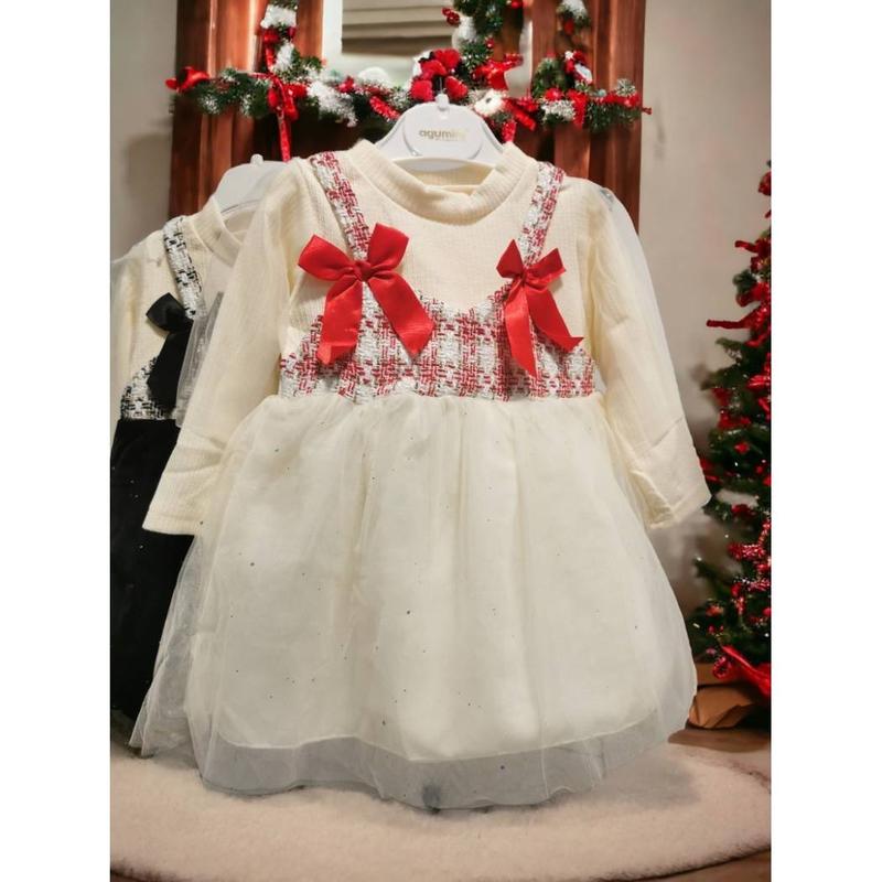 Заміри: ===РОЗМІР 74=== довжина 44 см ширина 26 см плечі 22 см рукав від плеча 27 см ===РОЗМІР 90=== довжина 48 см ширина 28 см плечі 23 см рукав від плеча 30 см Сукня верх бавовна (рубчик) на рукавах додатково фатин низ фатин і бавовняний підклад