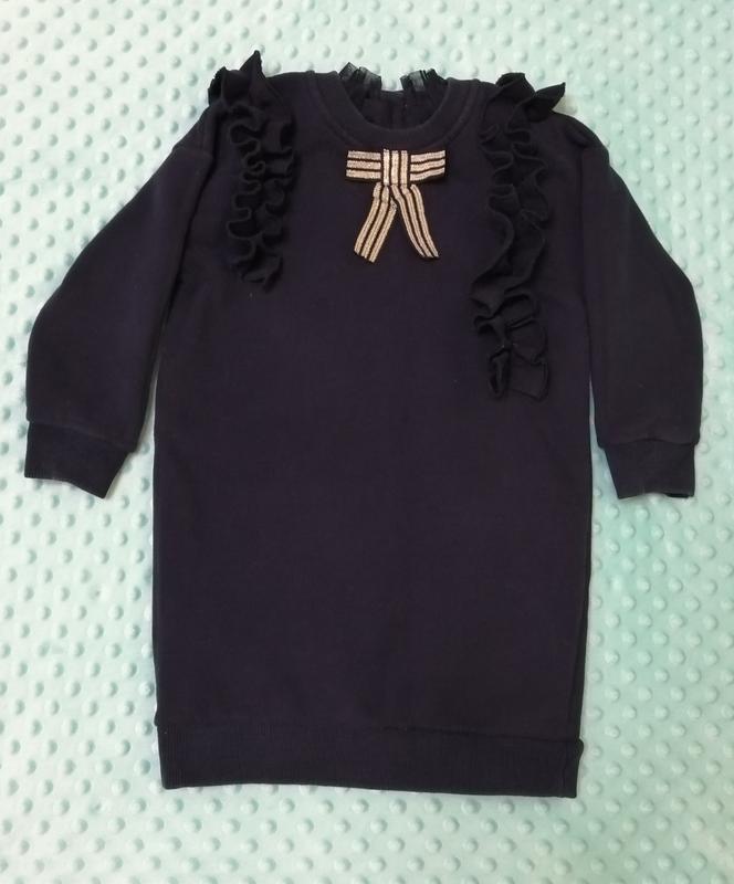 Очень стильное и теплющее платье-туника. Темно синего цвета. В отличном состоянии. На возраст 3-4 года. Замеры : Длинна - 56 см ПОГ - 36 см Рукав от горловины - 42 см