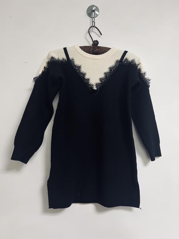 Платье туника теплое черное вязаное для девочки Арт 047640 Размер: 10 (140) - длина 67 см, ПО груди 39 см, длина рукава от ворота 54 см