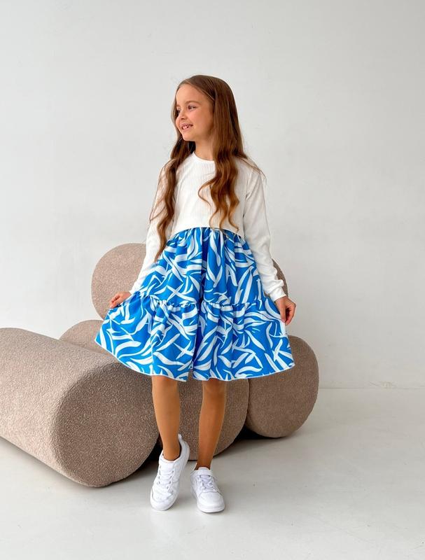 Красивое и милое платье для девушек. Легко одевается и красиво ложится по фигуре. Ткань - мустанг рубчик комбинированный с супер софтом Замеры: 122 длина - 68см, полуобхват груди - 32см, рукав от плеча - 43см. 128 длина - 70см, полуобхват груди - 33см, рукав от плеча - 44см. Мс