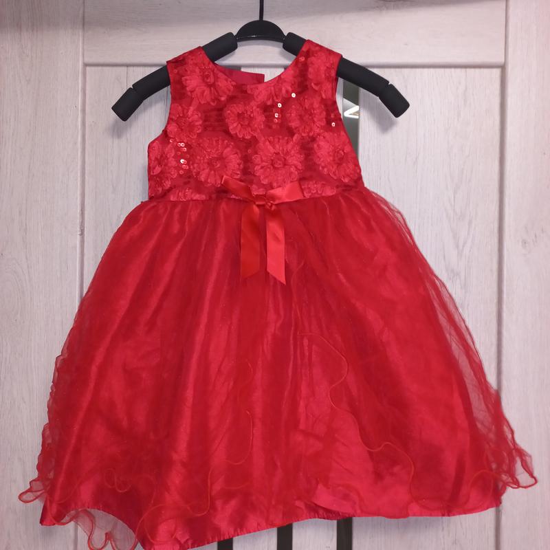 Очень красивое платье с 3д аппликацией цветов. очень пышное. юбочка на 4 подкладах. сверху 2 слоя фатина. подойдет для девочки 3-5 лет. Длина от плеча 60 см. от плеча до пояса 20см.