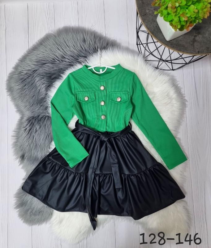 Яркое платье для юной модницы тканина трикотаж рубчик низ-эко кожа поясок в комплекті Рекомендую! 134(1 шт)-длина 70,пог 35,рукав от плеча 52 140(1 шт)-длина 71,пог 35,рукав от плеча 54 146(1 шт)-длина 74,пог 36,рукав от плеча 56 +-2 см