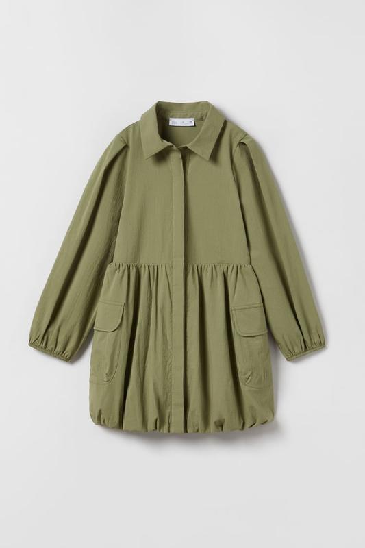 Сукня-сорочка з коміром і довгими рукавами з еластичною обробкою. Гудзики спереду приховані планкою. Бічні накладні кишені з клапанами. Деталь буф на подолі. Склад: 98% бавовна 2% еластан