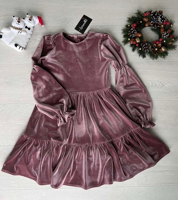 Велюровое платье с очень стильным перчатком❤ 140см - 1шт Ширина/ длина/рукав 140см 34/70/54/