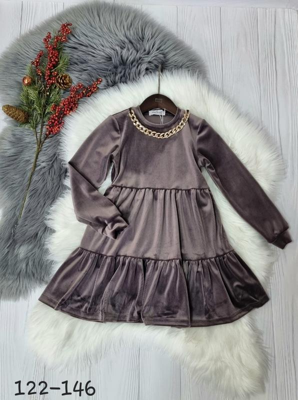 Отличное платье для девочки королевский велюр приятное к телу украшен цепочкой качество люкс 146(1 шт) - пог 36 см, длина 75 см, рукав 52 см +-2 см