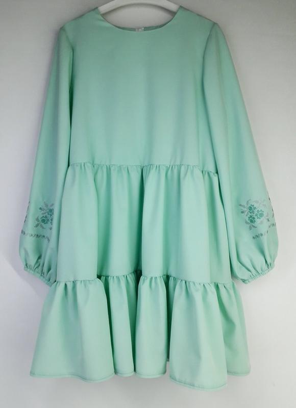 Шикарно детское платье для девочки с вышивкой на рукавах, ткань супер Софт, на спинке молния, очень нежная и приятная на ощупь. Пояс в комплекті.