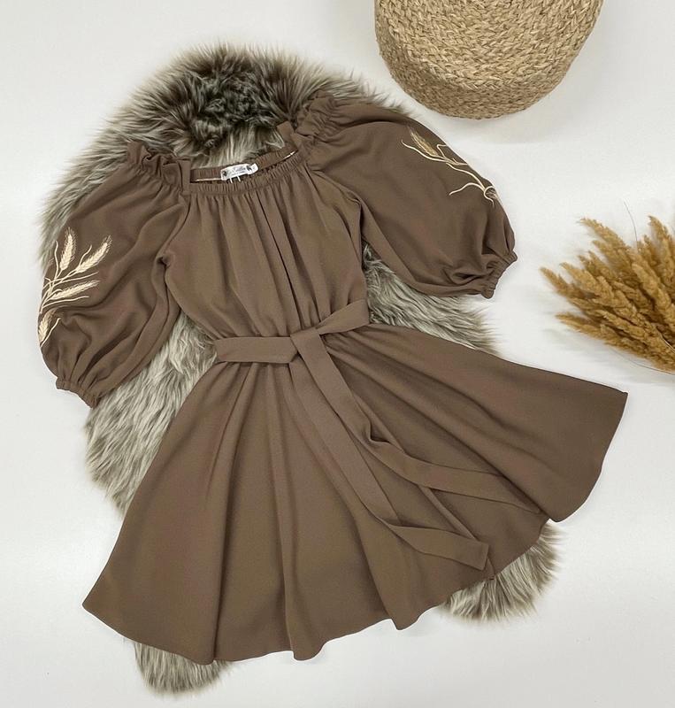 Арт 4459 Платье "Эмилли" в комплекте с поясом и трендовыми колостями вышитыми по рукавам Настоящая вышивка Ткань-креп диагональ (Барби) Супер качество рост/длина от плеча/пог/рукав полная длина похибка+-2см 152-158/83/42/44-1шт
