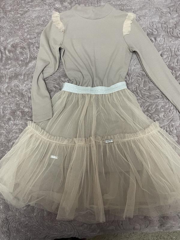 Очень красивое в бежевом цвете. Можно носить как тунику и как нарядное платье. На 7-8 лет.