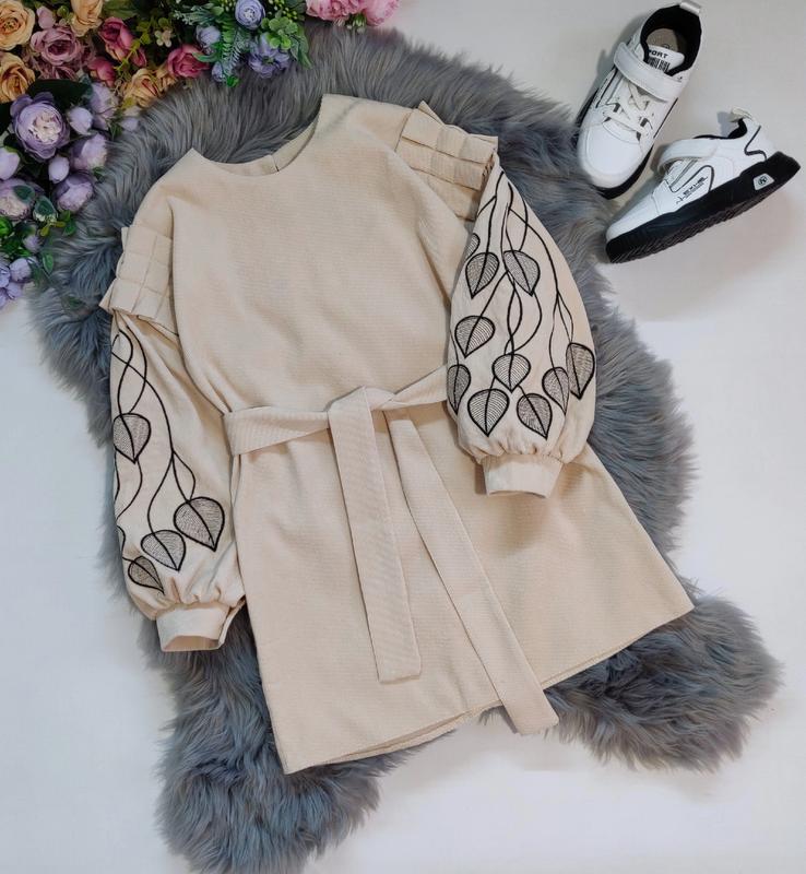 ток Весна пора краси, ловите еще одну новинку сезона💋💋💋 Шикарное платье с вышивкой на рукавах ткань вельвет, очень нежная и мягкая на спинке и манжетах застегивается на пуговицу,пояс в комплекте замеры: длина/рукав от горловины/пог 134-67/56/39 140-70/60/40 146-73/62/41 152-77/66/42 +-2см