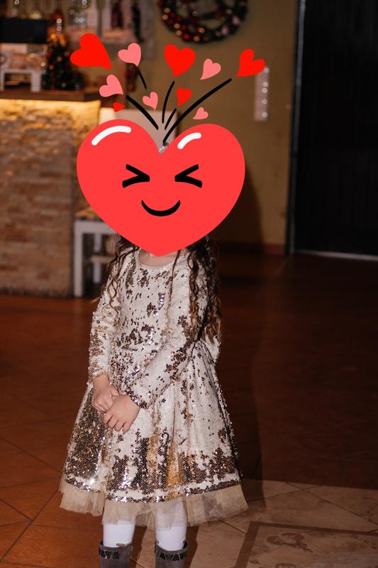 Дуже гарне плаття золотистого кольору з паєтками. Одягнули 2-3 рази. В гарному стані, паєтки добре тримаються.