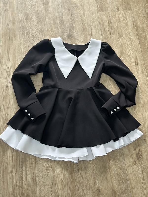 Плаття для дівчинки 140р. Комірець, знімається, спідниця на резинці. НОГ 37см. Рукав від плеча 55 см. Пояс 32 см. Одягнено 1 раз. Також є на розмірXS.