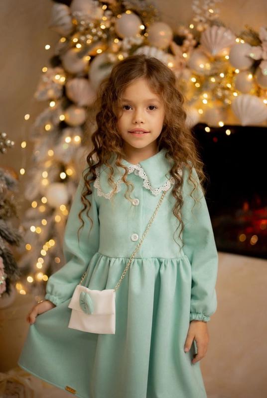 Нарядна сукня для красунь, яка налаштовує на святковий настрій🎄сумочка в комплекті, Тканина замш Заміри: Довжина плаття/рукав/пог 110 - 58/38/31 116 - 61/41/31 134 - 68/45/33 Ян