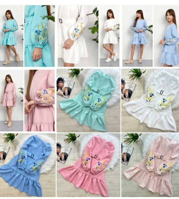 ціна 830 грн Неймовірна сукня в стилі вишиванки 💙💛 Ніжна та вишукана 🥰🥰🥰 Рукавчики вишиті в патріотичному стилі 😍 Пишна спідничка 💃🏻 Обʼємні рукава, понизу на резиночці. Є поясок 😉 Позаду сукня застібається на блискавку 👌🏻 Тканина: костюмка барбі 👍🏻 Виробник: Україна 🇺🇦 р.134-3шт р.140-3шт р.146-3шт р.152-2шт р.158-2шт ЗАМІРИ ⤵ +/- 1-2см!!! р.134-довжина від плеча 70 см/ПОГ 36 см/рукав від плечового шва 42 см р.140-довжина від плеча 72 см/ПОГ 38см/рукав від плечового шва 44 см р.146-довжина від плеча 74 см/ПОГ 40 см/рукав від плечового шва 46 см р.152-довжина від плеча 77 см/ПОГ 41 см/рукав від плечового шва 50 см р.158-довжина від плеча 80 см/ПОГ 42 см/рукав від плечового шва 53 см