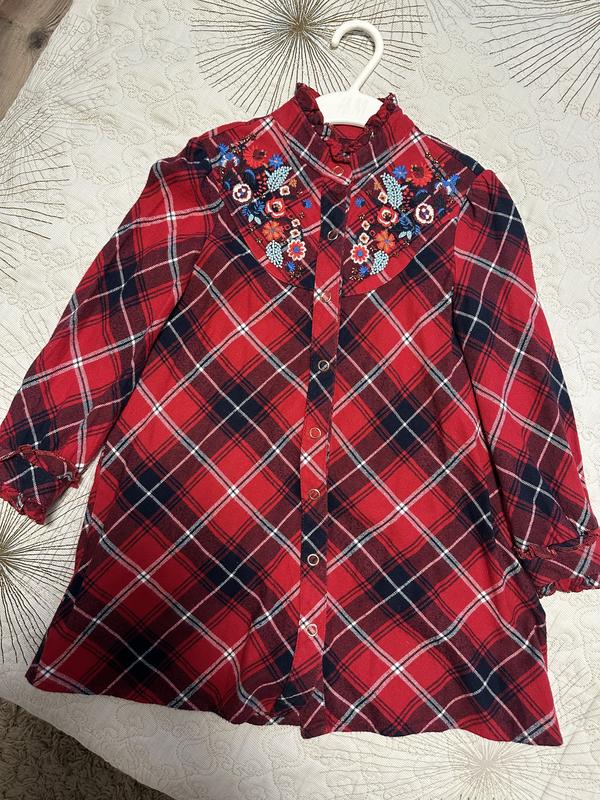 Очень красивое, тепленькое платье, спереди расшито бисером. Состояние новой вещи. На 4-5 лет (104-110).