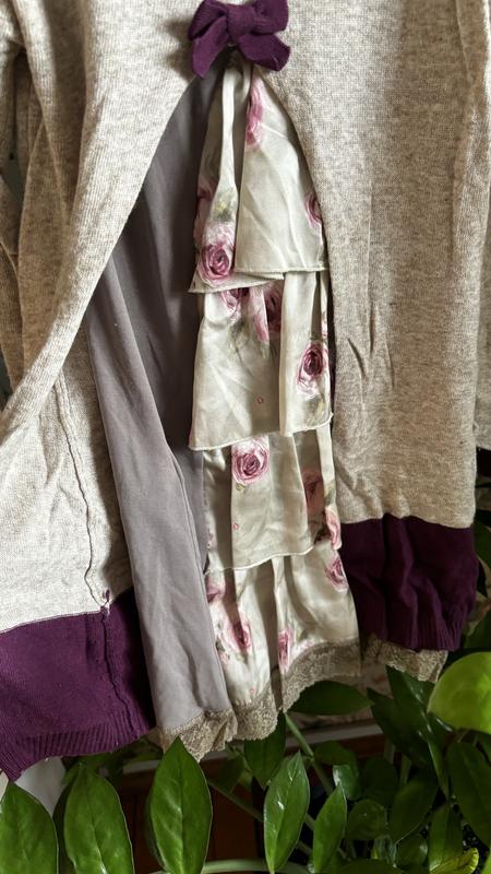Состояние отличное без изъян Вещь на фото примятая немного, т.к хранится в коробке Состоит из двух платьев Нижнее как удлиненная майка, а верхняя часть как платье с длинным рукавом и на спине разрез Состав 45% шерсти 25%пилиамид