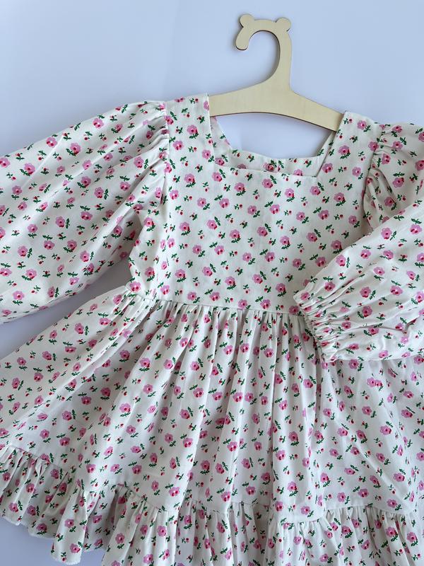 Сатинова сукня з довгим рукавом на резиночці та рюшею по низу. Довжина сукні 50 см, рукав 33 см, обʼєм грудей по сукні 58 см В наявності розмір 86-92.