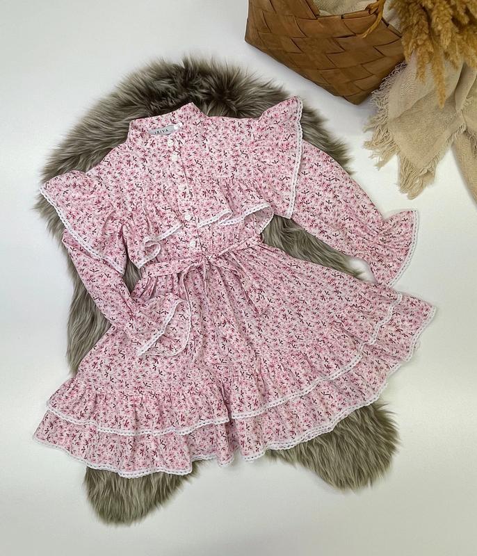 Таня арт 4543 НОВИНКА! Весняно-літня сукня з тканини софт прикрашена грайливими воланами обшиті бавовняним мереживом в талії та рукава під резиночку поясок у комплекті РЕКОМЕНДУЮ! зріст/довж./пог/рукав від горловини похибка +-2см 128/70/35/54-2шт 134/72/36/57-2шт 140/75/37/60-2шт 146/77/39/63-2шт 152/79/42/65-2шт