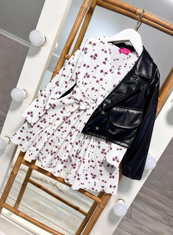 Новинка Модний комплект для дівчинки Куртка та повітряна сукня тканина супер-софт та еко-шкіра сукня- на запах, в талії є резиночка, поясок у комплекті куртка на кнопках без підкладки є кишеня виглядає дуже ніжно, тканина приємна до тіла зріст/довж.куртки/пог/рукав від горловини/довж.сукні/пог/рукав від горловини Похибка +-2см 134/40/41/55/65/36/53-2шт 140/42/42/58/68/37/55-2шт 146/45/43/61/72/38/58-2шт 152/46/45/63/75/39/61-2шт 158/48/48/66/78/40/65-2шт Арт ір