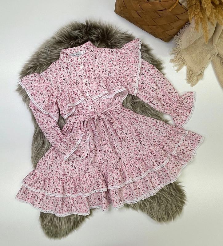 арт 4543 НОВИНКА! Весняно-літня сукня з тканини софт прикрашена грайливими воланами обшиті бавовняним мереживом в талії та рукава під резиночку поясок у комплекті РЕКОМЕНДУЮ! зріст/довж./пог/рукав від горловини похибка +-2см 128/70/35/54-2шт 134/72/36/57-2шт 140/75/37/60-2шт 146/77/39/63-2шт 152/79/42/65-2шт