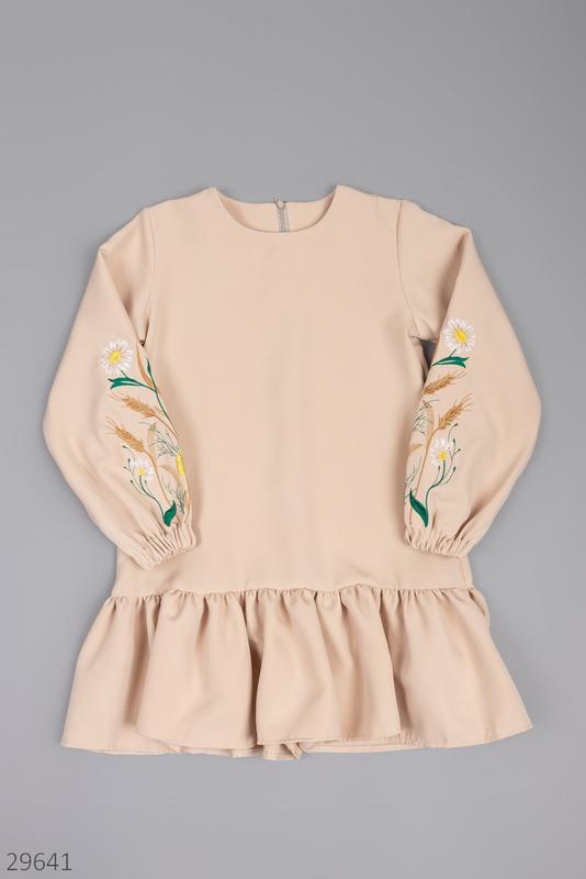 Сукня для дівчаток Колір: бежевий Матеріал: креп костюмка Країна виробник: Україна Сезон: Весна Розмірна сітка: 1-4 розмір Заміри: 1 розмір– плечі 32 см, рукав 48 см, ПО грудей 39 см, ПО талії 44 см, довжина 68 см. 2 розмір – плечі 33 см, рукав 49 см, ПО грудей 41 см, ПО талії 46 см, довжина 72 см. 3 розмір – плечі 34 см, рукав 51 см, ПО грудей 44 см, ПО талії 48 см, довжина 78 см. 4 розмір – плечі 35 см, рукав 53 см, ПО грудей 44 см, ПО талії 50 см, довжина 81 см . Припустима похибка у замірах 1-2 см. Робимо заміри однієї ростовки. *ПО-напівобхват