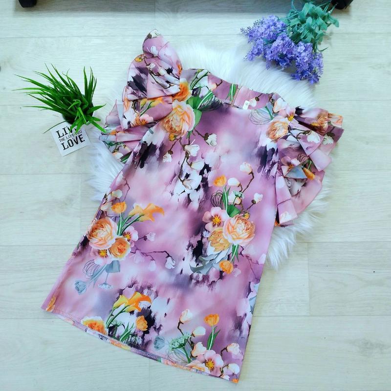 Ціна 570 грн Сукня з об'ємними воланами в квітковий принт ,дуже легка та неймовірна гарна 💐💐😍😍😍 На спинці потайна змійка🥰🥰 Тканина: софт💫 Виробник: Україна🇺🇦 р.140-1шт ЗАМІРИ +/-1-2см!!! р.140-довжина від плеча 65 см/ПОГ 38 см