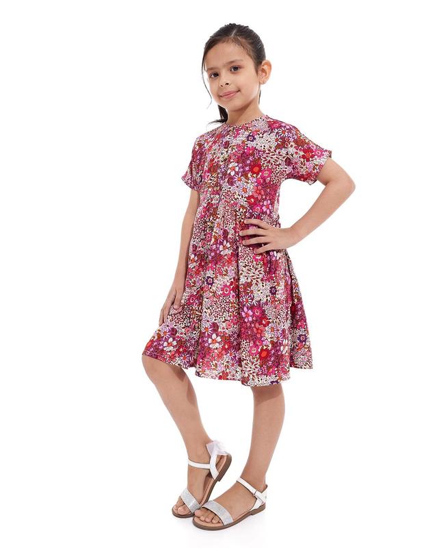 Яскрава сукня в квітковий принт N€xt🌿 🔸4 роки (зріст 104) 🔸Стан - нової, колір ближче до малинового ▪️Довжина - 56, груди - 35, рукав від шиї - 22