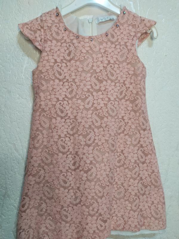 Ажурна сукня для дівчинки, знизу х/б підкладка, біля горловини прикрашена стразами. Довжина - 48см, ПОГ-26см. З додаткових питань пишіть.