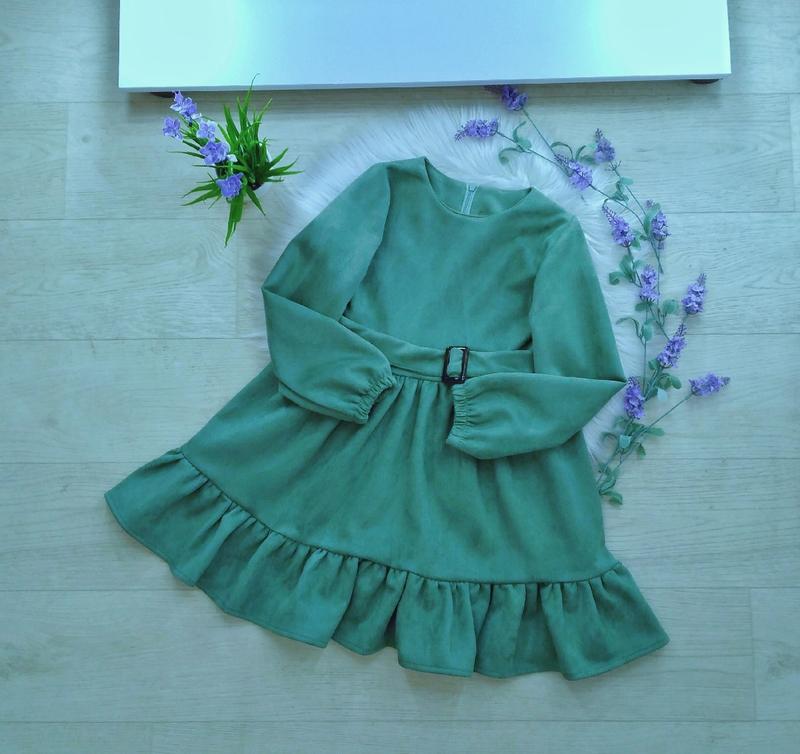 Вишукана сукня з пишною спідницею 💥💥🌸🌸🌸 Позаду є блискавка ,та резинка на рукавах , талія ругулюється поясом який йде в комплекті ,дуже якісна та щільна тканина, приємна до тіла 🥰🥰🥰🤩 Тканина: замш💫 Виробник: Україна 🇺🇦 ЗАМІРИ +/-1-2см!!! ▪р.134 довжина 69см/рукав від плечевого шва 47см /ПОГ 33см ▪р.140 довжина 72см/рукав від плечевого шва 49см /ПОГ 33см ▪р.146 довжина 74см/рукав від плечевого шва 50см /ПОГ 35см