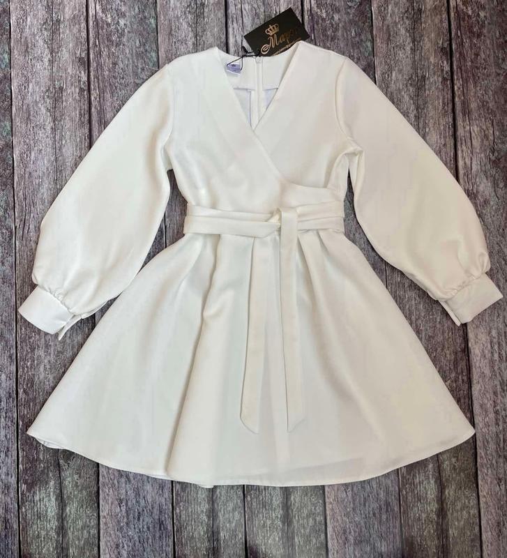 через кнопку купить только полная оплата!!! Стильное платье для модниц По спинке к поясу застегивается на молнию. Спереду на запах. Пояс в комплекте. Тканина- костюмна. Замеры: 164 длина - 87см, рукав от плеча - 63см, полуобхват груди - 45см Размеры в наличии: МОЛОЧНЫЙ: Мс