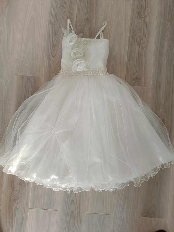 Платье для девочки нарядное, праздничное в идеальном состоянии. Для девочки 5-8 лет. Длина- 85 см, ПОГ- 25 см, тянется до 30 см. ПОТ- 30 см. Внизу 3 подъюбника.