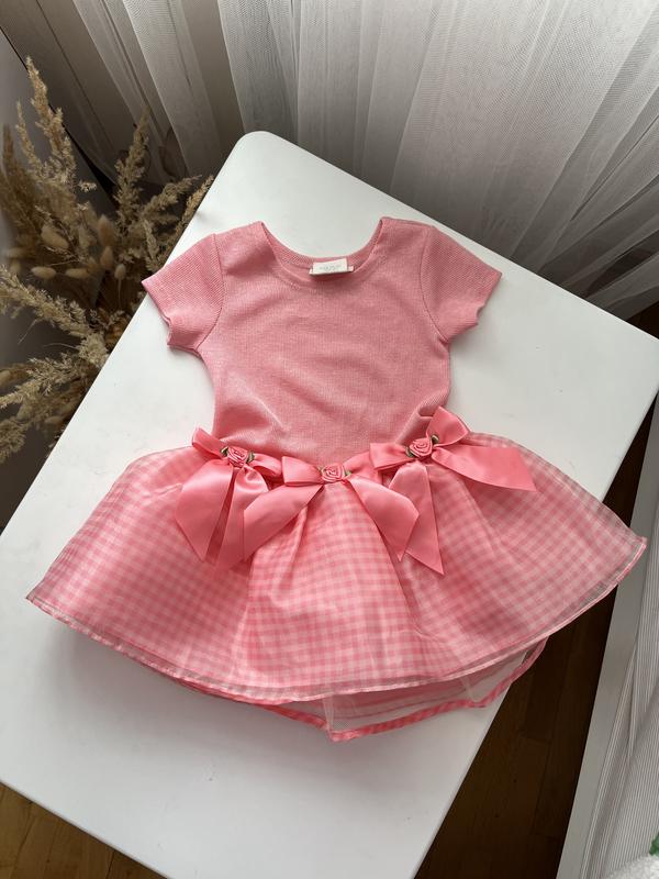Плаття нарядне для дівчинки в рожевому кольорі. Стан гарний, є маленька затяжка, майже не помітна. Заміри надам.