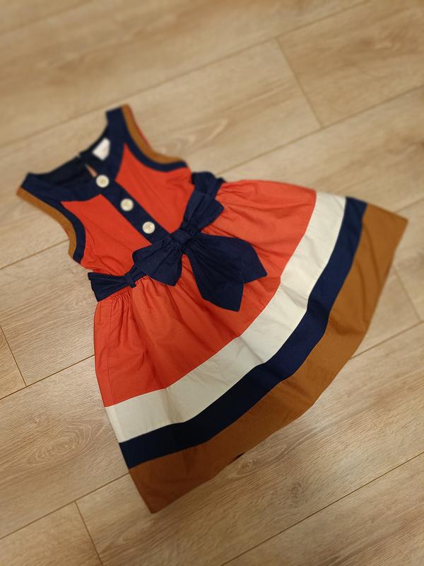 Сукня Next 116см 6 років. Бавовна. На торсі - трикотаж, Підклад спіднички по низу фатиновий. Гарне поєднання коралового, темно-синього, молочного та коричневого. Стан ідеальний.