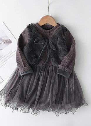 💝В наличии💝 ✨Нежное платье для принцесс верх трикотаж,в середине на плюше, жилетка пришита,низ 2 слоя фатина,теплая и нежная ♦️90-3 шт ♦️100-3 шт 💌90 р -длина 52 см,рукав 32 см 💌100 р -длина 54 см,рукав 35 см 💌120 р -длина 59 см,рукав 38 см