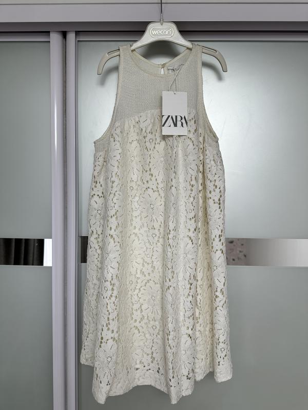 Стильное, легкое и очень красивое платье от известного бренда Zara. Зарекомендовал на официальном сайте, но так и не пришлось одеть. Под кружевом нежная подкладка. Заміри на фото.