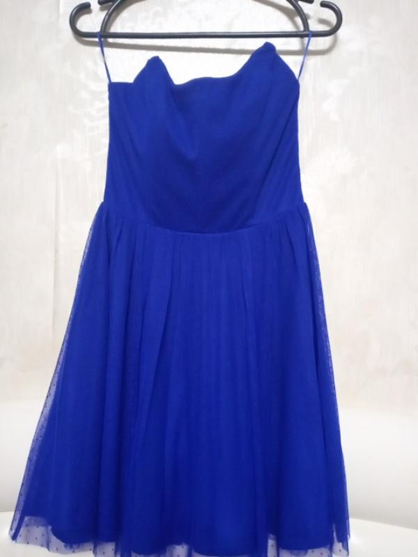 нарядное платье на девочку 42 размера, приятного цвета электрик, обхват груди 74 см., талия 68см, длина 63 см