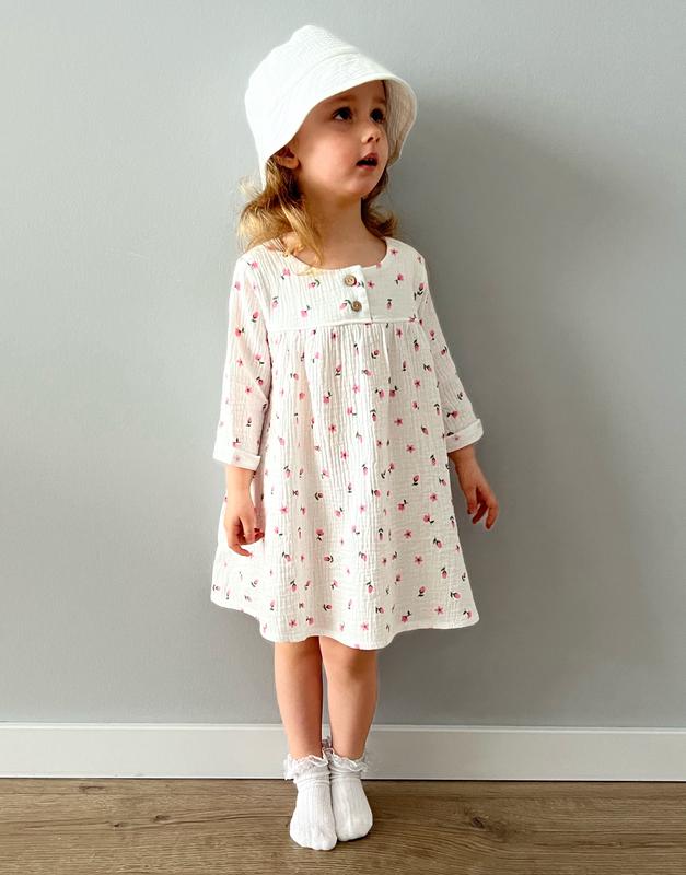Детское платье из мягкого и приятного на ощупь муслина от Loom Line. Крой платьица свободный, на груди двойной слой ткани. Материал – жатый двухслойный муслин (100% хлопок). Ткань очень мягкая и приятная на ощупь, комфортная при ношении, ее можно не гладить. Одежда из муслина полностью натуральная, поэтому прекрасно дышит, хорошо пропускает влагу, не электризуется. Размеры и цены: Размер 92, 98 – 499 грн Размер 104, 110 – 599 грн Размер 116, 122 - 679 грн Размер 128, 134 – 799 грн Весь ассортимент по ссылке: https://shafa.ua/member/natalp