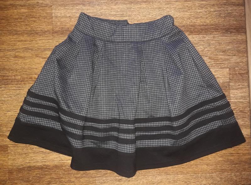 Тип одягу: Спідниці Спідниця, р. 134. Довжина 42 см, талія 28см, на резинці. Розмір: 9 / 134 Колір: Сірий, Чорний