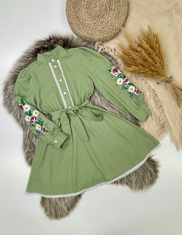 Таня арт 4759 Нарядна сукня тканина льон зі справжньою вишивкою в талії під резинку та поясок манжети та попереду ґудзики РЕКОМЕНДУЮ! зріст/довжина/пог/рукав від плеча похибка+-2см 134/74/36/57-1шт 140/78/38/60-1шт 146/81/39/63-1шт 152/83/41/67-1шт