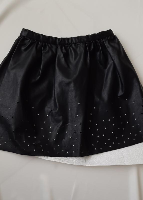 Тип одягу: Спідниці Спідниця чорна, штучна шкіра, фірми COOL CLUB. Ріст 128. 100% поліуретан. Є стягуючі гумки з гудзиками. Дуже м'ягка, прикрашена вирізаними дирочками у вигляді сердечок. Заміри: ПоТ 31см Довжина 38см.