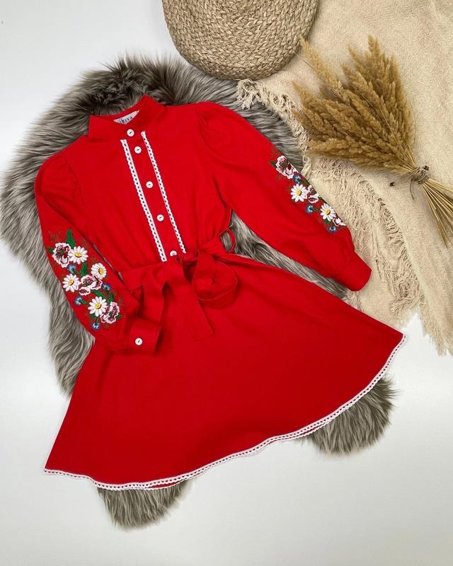арт 4757 Нарядное платье тканина льон с настоящей вышивкой в талии под резинку и поясок манжеты и впереди пуговицы РЕКОМЕНДУЮ! рост/длина/пог/рукав от плеча похибка+-2см 128/71/34/54-1шт 134/74/36/57-1шт 146/81/39/63-1шт