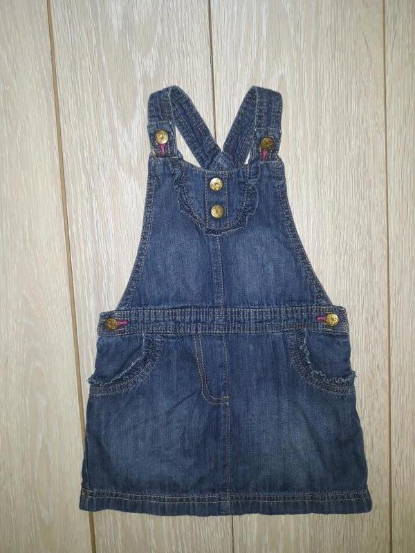 Тип одягу: Плаття Фірмовий сарафан для дівчинки на 2-3 роки. Вгорі та на талії застібається на кнопочки. Склад 100% бавовна. Стан відмінний Виміри: довжина по спинці від плеча 50 см, довжина спідниці від талії 24 см, талія 27 см