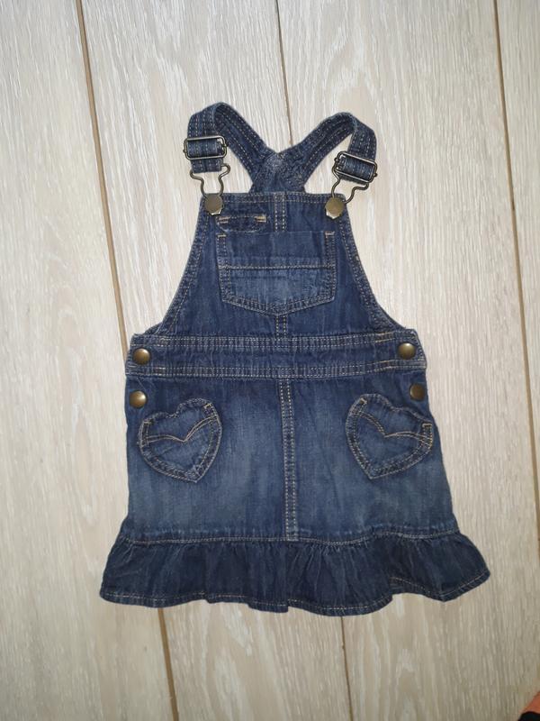 Тип одягу: Плаття Фірмовий джинсовий сарафан для дівчинки на 1,5-2,0 роки. Висота регулюється, талія кнопки. Склад 100% бавовна. Стан відмінний Заміри: довжина по спинці 46 см, довжина спідниці від пояса 24 см, талія 26 см