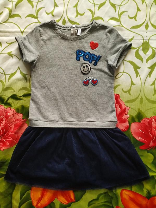 Тип одягу: Плаття Нарядне плаття для дівчинки 5-6 років у відмінному стані,низ сукні йде підкладка+ 2 шари фатину. Довжина-64 см,під ручками-32 див.