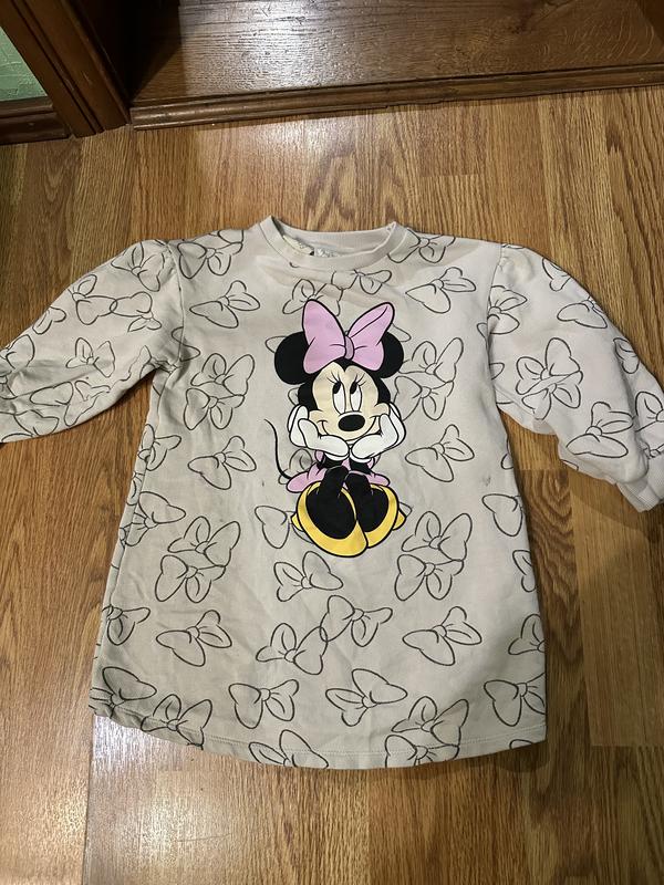 Представляю вашему вниманию шикарное весеннее платье Микки) интересным принтом. Нежный цвет и приятная ткань двунитка. Вашей принцессе будет красиво и удобно. Будет отлично под черные лосины. В наличии размер 104. Может подойти и на 110. Смотрите замеры. Замеры : Плечи 34 см, ПОГ 37 см, ПОТ 39 см, длина по спинке 52 см. Гарного дня! Приятных покупок!